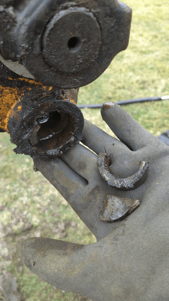 So what was next? After unpacking we not only found out that the boom hydraulic switch was again not working (only moving to the left), but also found the bushings being broken when we took off a bucket. To the defense of the “fully serviced supervisor” this can also easily get unnoticed when you are not changing the buckets before handover.