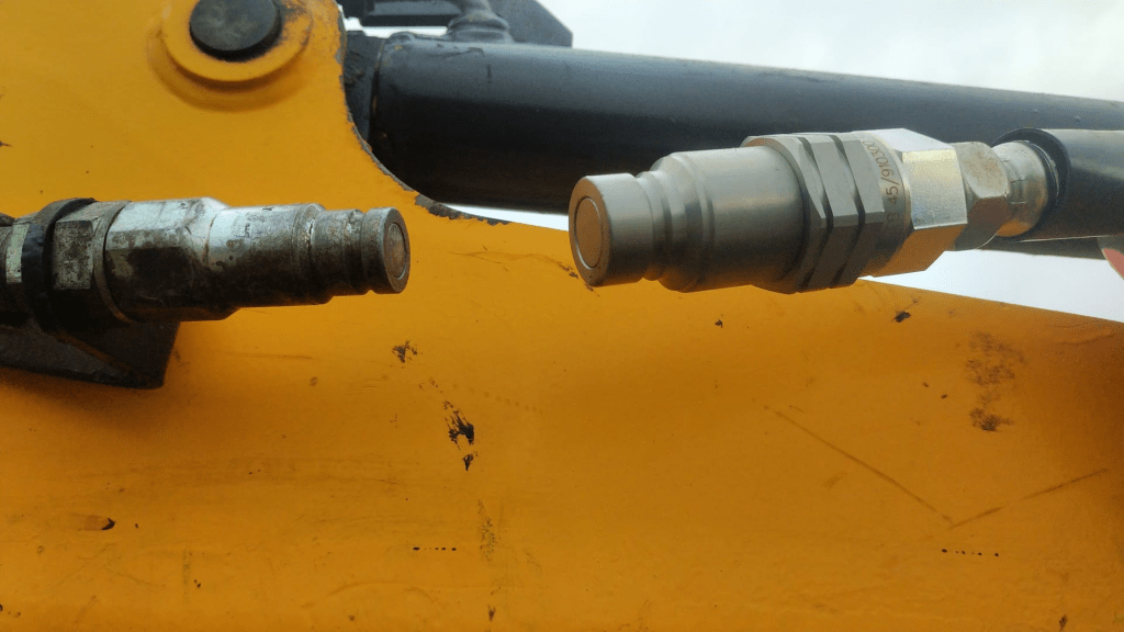 So after the mechanics left, I could at least try with my “new” earth drill. Just to find out, that the hydraulics on the hydraulic hoses of the drill leaked. And I found out, that the hydraulics tank was nearly empty. Also something one normally would not notice when performing some service work before handing it out to a customer.