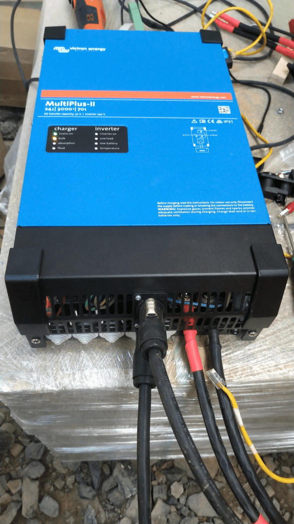 For the connection of the Inverter/charger to the bus bar, I used the Victron installed 25mm2 welding cables.