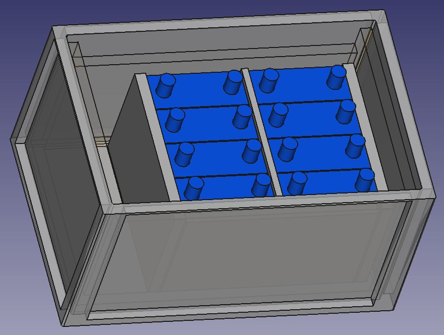 First, the total weight of the cells alone would be roughly 16 * 5.3kg ~ 85kg. This is way beyond what a single person can – or at least should – lift. So, I deciced to split the battery into 2 separate cell blocks of 8 cells each (similar as I did split the 8s battery in the Toyota HiAce). With this approach, I would be able to: