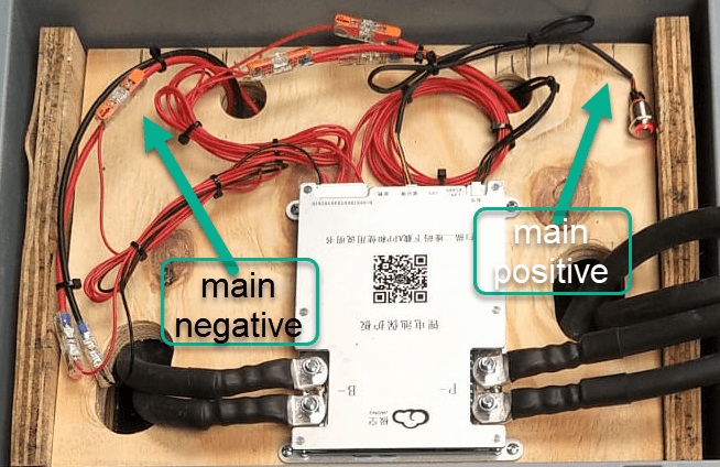 16s Battery top view16s Battery Block 1 main negative with BMS16s Battery Block 2 main positive with DC breaker