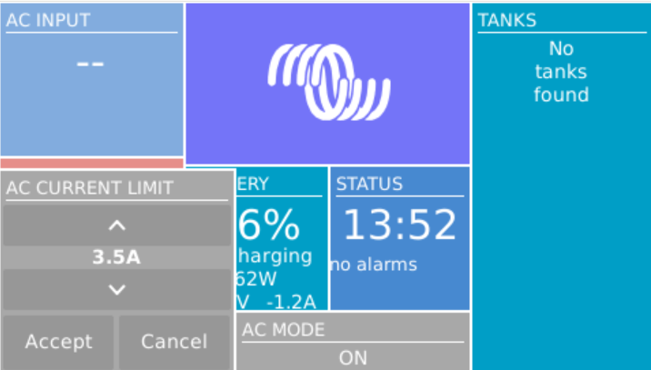 In general, when connected to shore power we want to be able to limit the AC current drawn from the shore power. This is easily accomplished by setting a limit on the MultiPlus itself – or, as in our case, via the VE.BusSmart Dongle. Though the Phoenix does have a VE.Direct interface and is able to be connected to a GX device, in our setup we did not want to use a GX device. So, essentially the Phoenix can only be controlled via Bluetooth and the VictronConnect app. But configuring the AC input limit on two devices (Phoenix and MultiPlus) is not only a nuisance from a usability standpoint, but also error-prone as one (or at least we) tend to forget things quickly. So, a different and better solution was needed.