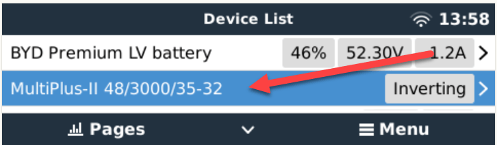 As I did not want to connect a Cerbo GX to the system, I just used the VictronConnect App. Maybe I add a VE.Bus Smart dongle later on, or I connect some GX nevertheless. Who knows … Until now, it needs a wired connection to the inverter to see its status.