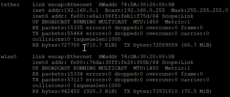Note: When I tried with the v2.93 on the Raspberry Pi 3 the RX/TX counters were always empty (but nevertheless worked). Via ifconfig the packets were correctly shown. But with the Pi 4 traffic was shown on the UI right from the start.