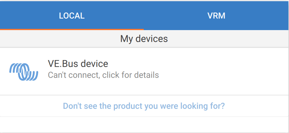When I tried to reconnect with the VictronConnect app, the detection phase took very long – but the MultiPlus was not recognised.