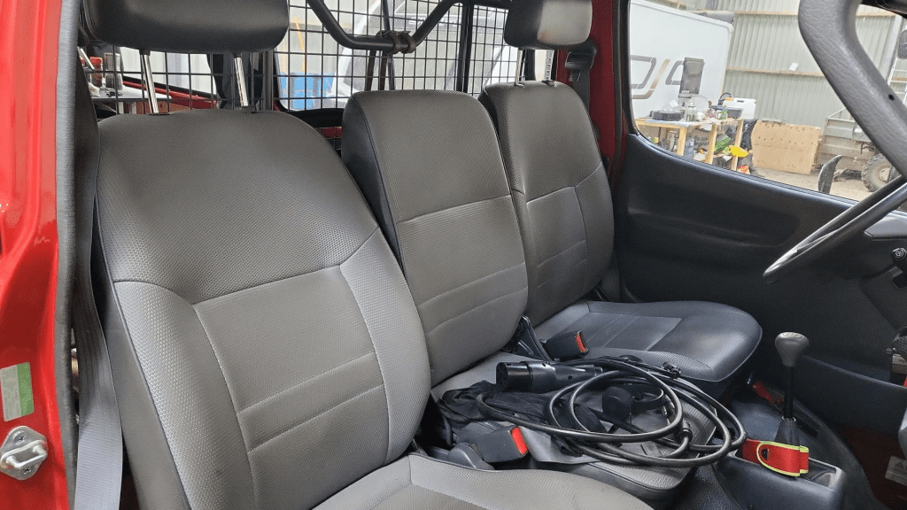 Custom battery build needed, as there is not enough space for a typical 2 * 4 cells setup behind he seats. But, only a single BMS and thus less wiring is needed. Comes with a slight disadvantage of not having native 12V from the battery. This is actually not an isse, as all our DC devices also accept 24V. Cells can better balance voltage differences across a single 8s bank.