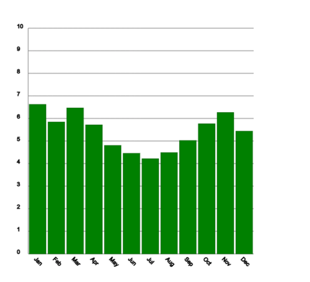 Distribution over the year shows, most of the wind is to be expected during autumn, winter and spring.